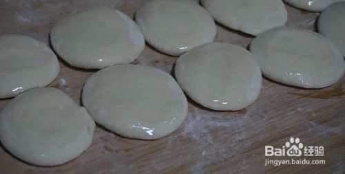 把面团压成面饼,涂上花生油,每个面饼之间都涂上油,然后摞在一起。