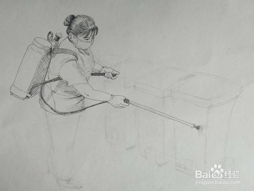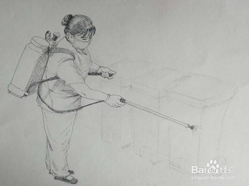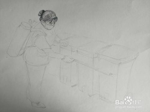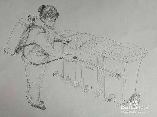 今天和大家分享一下画垃圾箱消毒的阿姨的线描速写过程,希望大家喜欢。