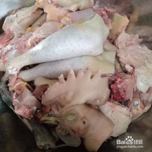 锅中烧水把鸡肉焯一水,把锅中的脏浮沫撇出。