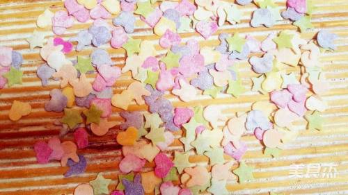 7接下来制作卡通面片,取一小块面,擀成薄片,用喜欢的模具刻出面片即可。 卡通面做法(适合1岁以内)