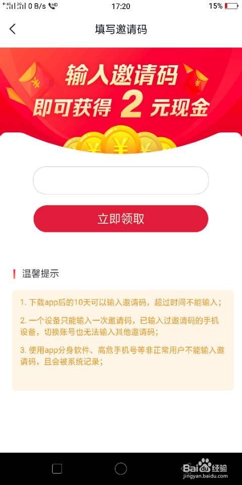 第四种方法:填写邀请码,新人填写邀请码可以获得红包。