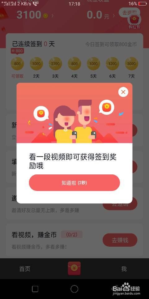 第一种方法:观看短视频,到达一定时间就可以获得金币,金币可以兑换红包。