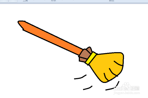接着我们用直线工具画上两条直线,顶部用弧线连接,这样就画好了扫把的轮廓;