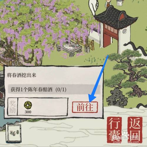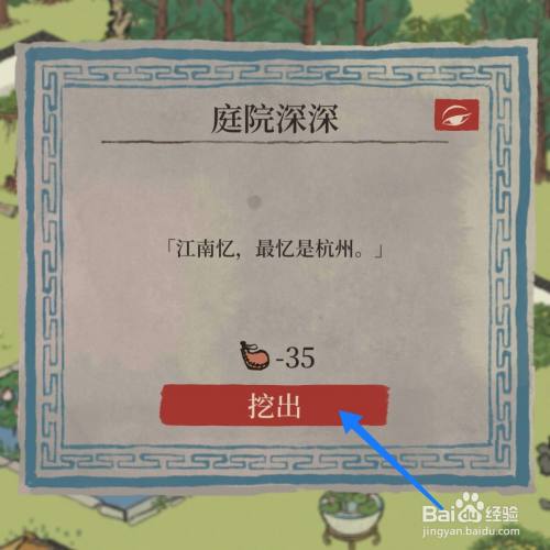 弹出“庭院深深”的窗口,点击“挖出”春醅酒;