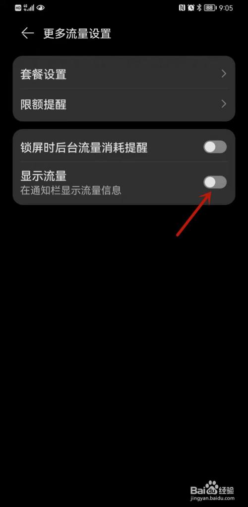 四、点击红箭头所指的位置,即可在通知栏显示流量信息。