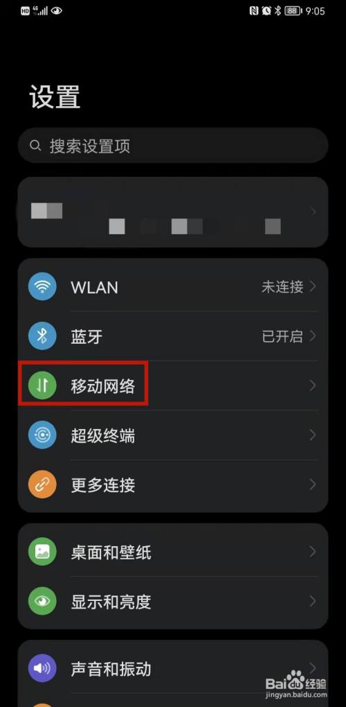 一、打开设置,点击【移动网络】,进入新页面。