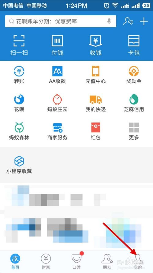 我们打开支付宝,点击底部导航中的“我的”。