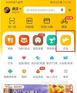 第一步在我们的手机上打开美团,进去首页之后,点击外卖,如下图所示: