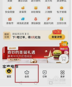 第二步进去美团外卖之后,点击底部的会员,如下图所示: