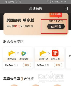 第三步进去美团外卖会员界面,点击立即续费,如下图所示: