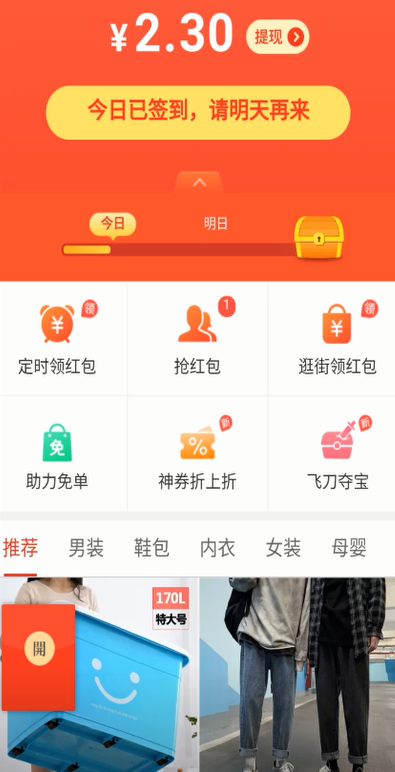 在首页的上方点击“现金签到”,即可进入签到活动。