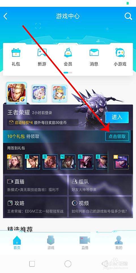 才开始玩王者荣耀的小伙伴,都不知道怎么领取新手礼包吧?下面小编就为大家演示一下王者荣耀怎么领取新手礼包吧。