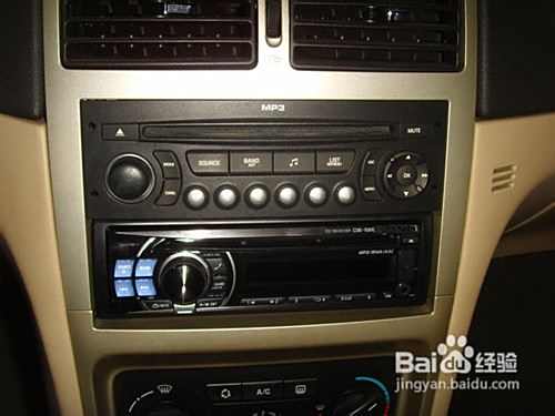 安装完后的图片,307这款车改装单DIN的主机跟原车很相配,也不用改装面板.