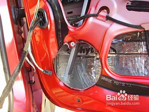这个就是喇叭的新的工作位置了,307原车喇叭是装到门板上面的,但是那样容易造成门板振动而发出噪音影响到听音的效果.改到门板上来就可以解决了这个问题了.
