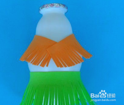 粘贴到酸奶瓶的顶部,并剪出刘海。
