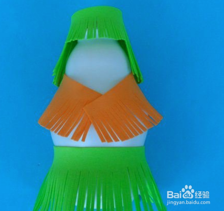做出这位女郎的帽子。最后用黄色海绵纸做腰带,并粘贴三角形的绿色海绵纸作为装饰。画上表情后就完成啦~