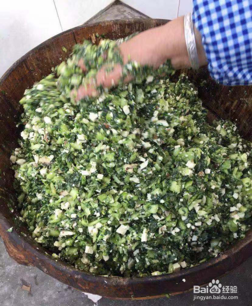 将所有食材剁碎,混合均匀,放入油盐等调料,搅拌均匀。