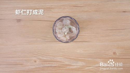 然后,腌制好的虾仁倒入搅拌杯中打成泥,白萝卜去皮切成丁。