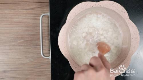 首先,大米洗净,倒入锅中,加水熬制成粥。