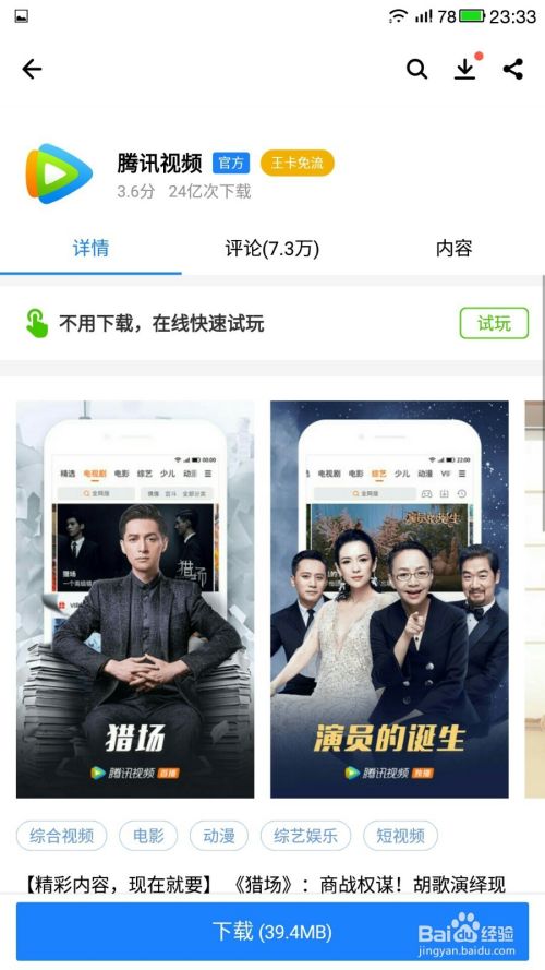 接着打开应用宝上方搜索,找到腾讯视频,接着在里面就可以免流看了