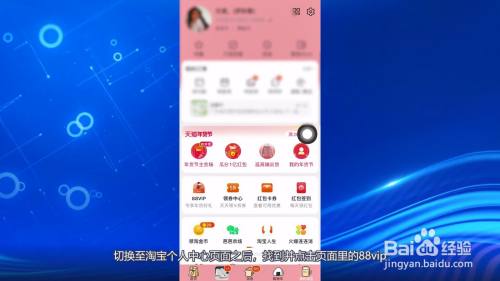 切换至淘宝个人中心页面之后,找到并点击页面里的88vip,进入下一个新的页面。