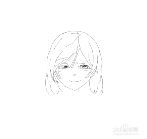 再在头发的基础上再画出美女的面部,然后再画出美女的鼻子和嘴巴,如图所示: