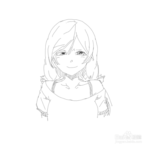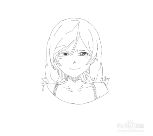最后我再画出美女的身体,然后在身体的上面再画出美女的衣服,这样美女头像就画好了,如图所示: