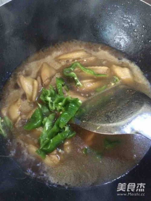 5最后放入辣椒和蒸鱼豉油,兑入少许水到收汁盛出