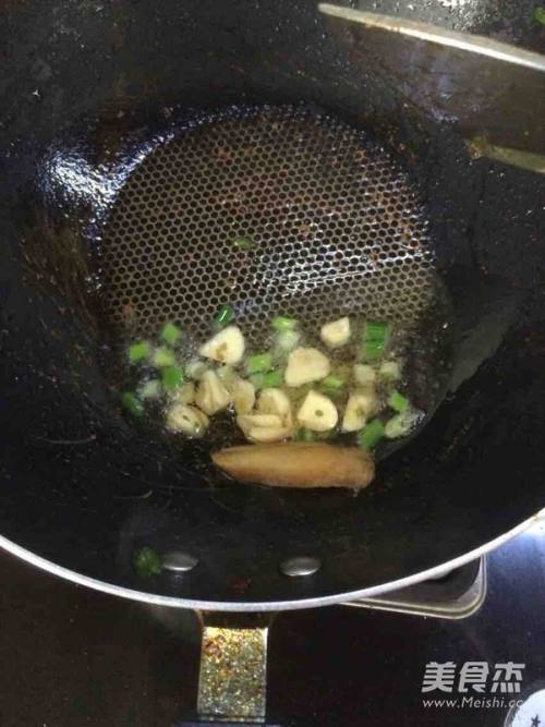 3锅内放油,待油热放入葱蒜炸锅爆香