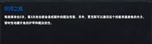 R技能:宗师之威。之所以说贾克斯是一个前期不强势的英雄,最大的一个原因就是在前期没有R之前贾克斯的三下平A时打不出暴击伤害的。可以这么说,玩贾克斯就是玩他的大招,他的大招虽然不能给敌方带来实质性的伤害,但是却给他带来了一个给力的被动,有多强,谁用谁知道。