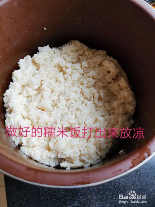 糯米饭煮好了,要等饭变凉,这时候你可以把饭打出来,也可以不打出来,如果打出来的话,最好装在你最后要放酒酿的那个容器,免得来回倒腾。我是装在一个之前坏了的电饭煲内胆里面的。