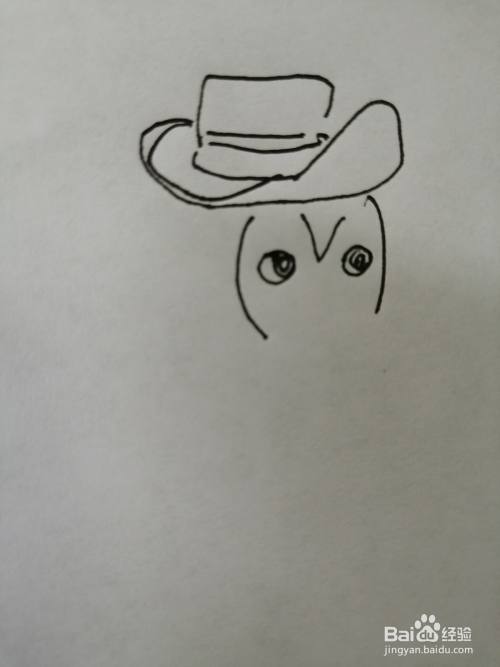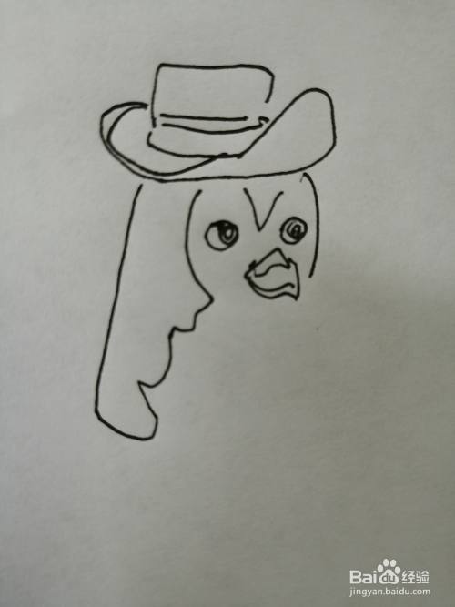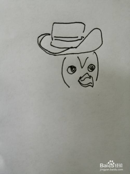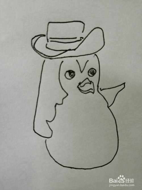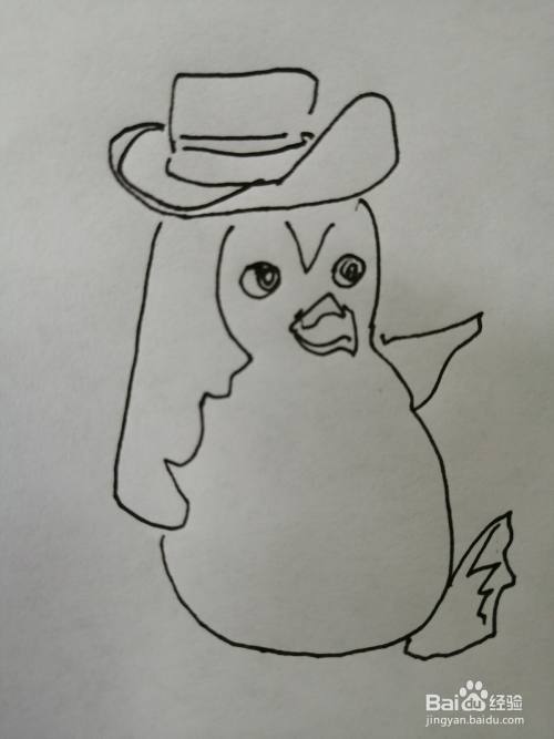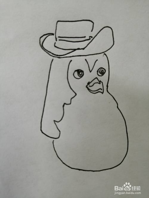 第一步,我们先把可爱的小企鹅的帽子画出来,注意帽子细节的画法。