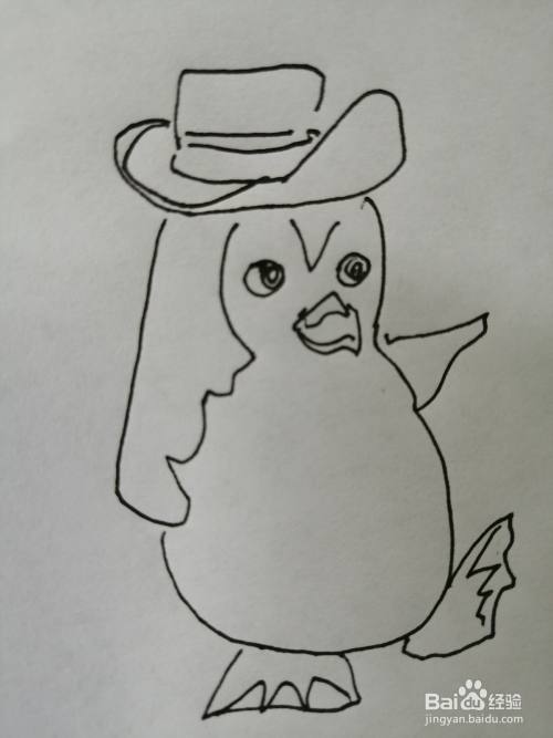 第七步,最后把可爱的小企鹅的两只脚画出来。可爱的小企鹅就画好了。