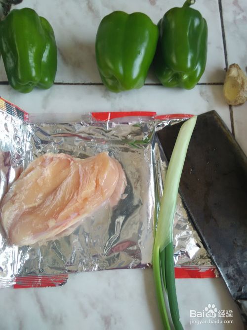 将青椒切成丝,肉也切成丝,葱切片,姜也切成片。