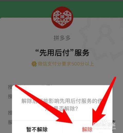 点击解除按钮,取消先用后付就是取消货到付款。
