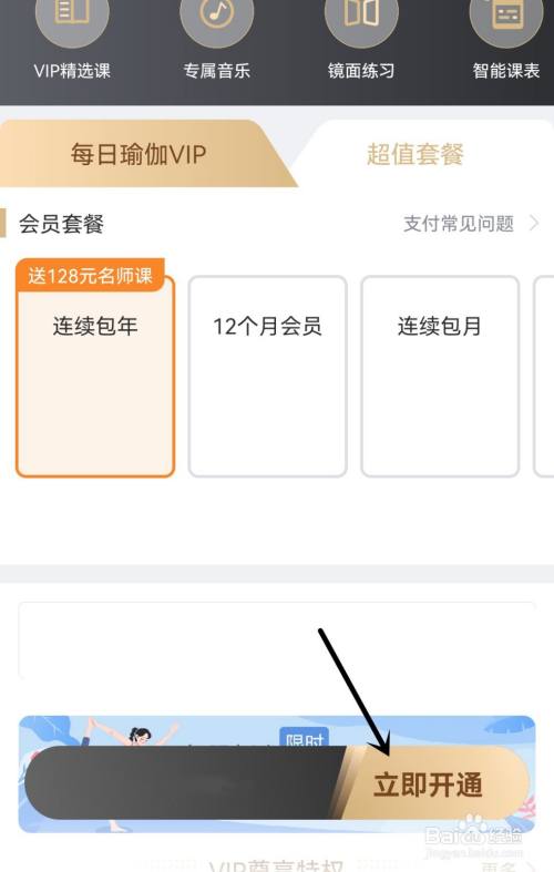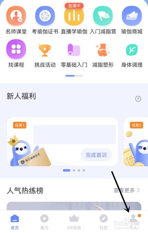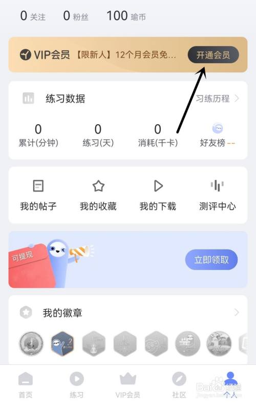 进入每日瑜伽,找到个人页面,点击开通会员,随后点击立即开通。