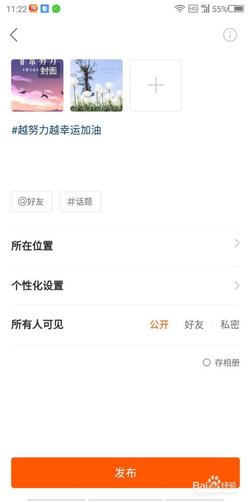 第四步,作品初步完成设置后进行其他设定,比如话题和个性化设置,如下图所示: