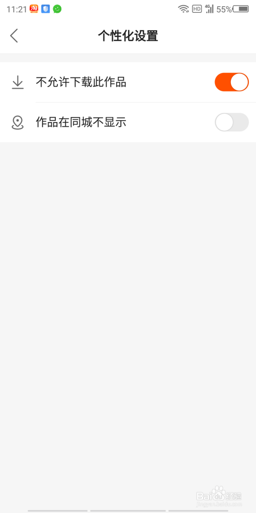 第五步,在个性化设置中如果不想作品被别人下载,可以选择不允许下载此作品,如下图所示: