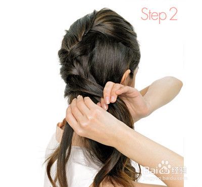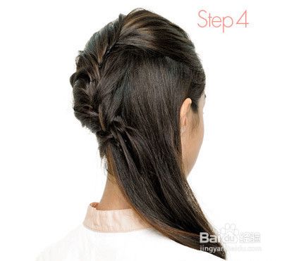 接着开始从头顶取头发开始编发,由左向右边注入头发往下编到脑后。
