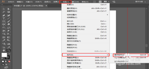 来给画布建立参考线,执行菜单栏中的视图—标尺—显示标尺,或者直接按快捷键Ctrl+U