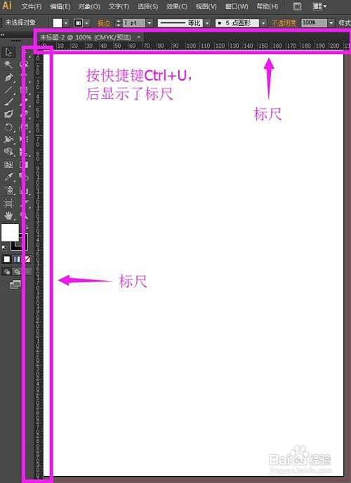 点击显示标尺后,我们可以看到画布的左方和上方显示了标尺。