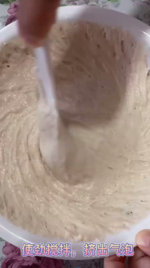 使劲搅拌,挤出气泡。
