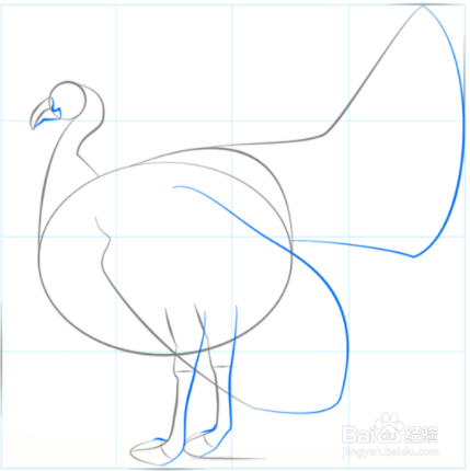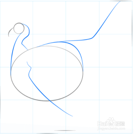 画出脖子。添加有关其尾巴羽毛和翅膀的基准线。