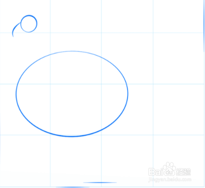绘制网格线,确定出火鸡的宽度和高度。绘制两个椭圆,这将有助于定义其头部和身体的位置。画一条线,将其作为喙。