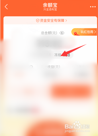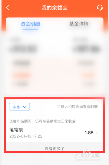 点击页面上冻结的金额,显示的是“攒在余额宝”。