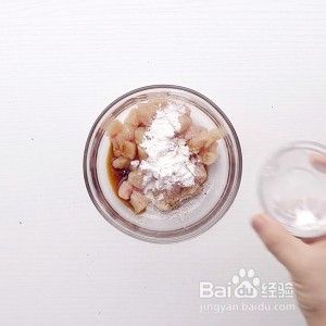 鸡胸肉切成小丁,加生抽、黑胡椒粉和淀粉,腌制15分钟。