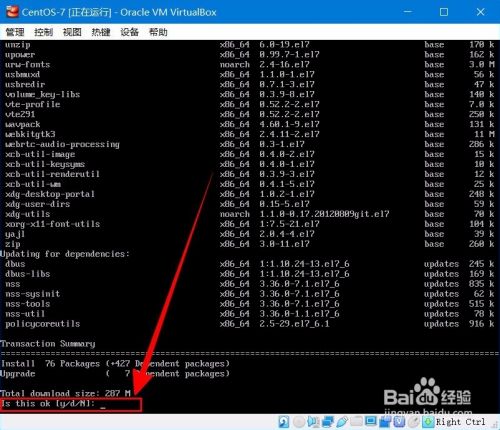 然后还需要输入y,确认安装。