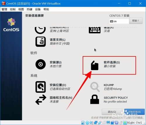 在如图所示界面,正式开始安装之前,进行“软件选择”。