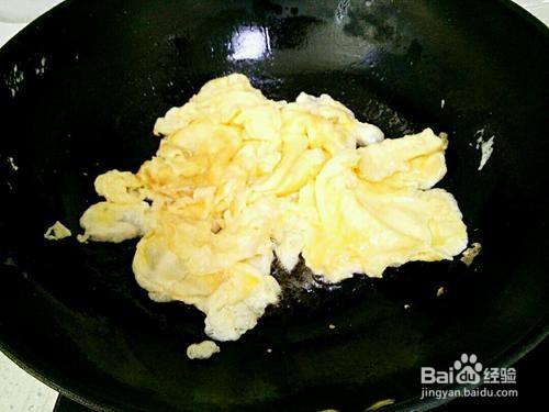 起锅烧油,将鸡蛋液放入锅中,炒至凝固