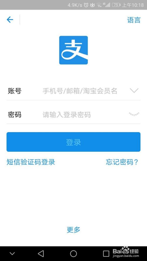 接着就来到了我们支付宝新账号的登录界面,我们输入账号及密码就可以了,如图所示。